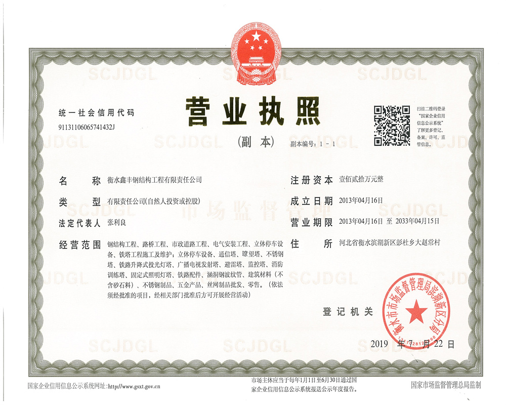 衡水鑫豐鋼結(jié)構(gòu)工程有限責(zé)任公司建于 2003年, 技術(shù)力量雄厚 , 專注生產(chǎn)鋼結(jié)構(gòu)鐵塔系列產(chǎn)品 。本廠具有鋼、鋁塔設(shè)計(jì),制作以及鑄造、鉚焊、鍛壓、熱鍍鋅、防腐等綜合制作能力,在設(shè)計(jì)、制作、安裝以及專用設(shè)備方面有豐富的經(jīng)驗(yàn)。